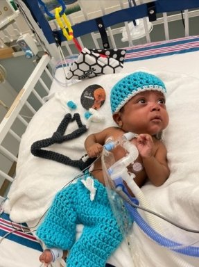 As a micro preemie, River was diagnosed with severe bronchopulmonary dysplasia, requiring mechanical ventilation in order to breathe.